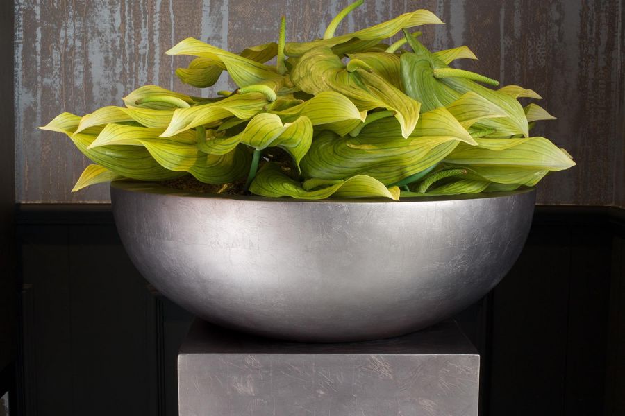 Ravni in klasično oblikovani cvetlični lonci NEW LOFT so še posebej primerni za okrasitev z visokimi rastlinami. Izdelani so iz inovativnega materiala, mešanice plastike in pravih kovinskih delcev, ter so izjemno lahki, robustni in odporni na UV-žarke, saj niso barvani. Sčasoma posode dobijo izgled patine, vendar še vedno ne morejo zarjaveti. Visokli lonci New Loft imajo možnost sadilne posode z vodno rezervo.