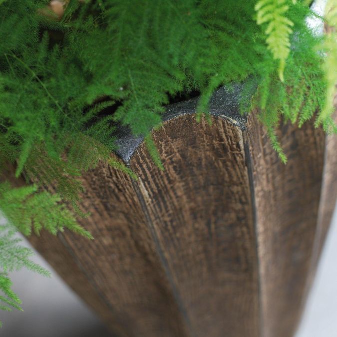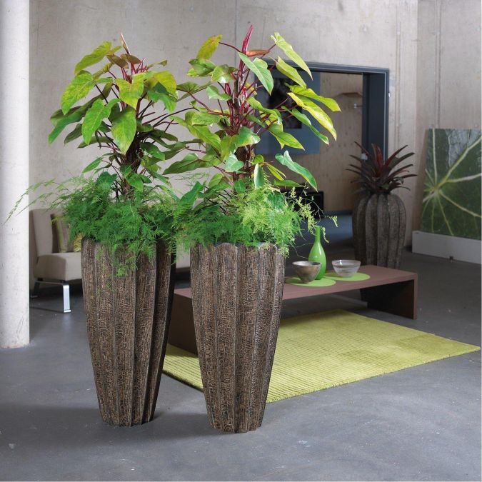 Eleganten, okrasen lonec iz skupine Fleur Ami je izdelan iz steklenih vlaken in ročno nanesenimi listi banane. Čudovita serija je optimalna za notranje prostore saj s svojo nenavadno površino pričara ambient narave. Zaradi ročne obdelave predstavlja vsak lonec unikat. Primerni so za notranje prostore.