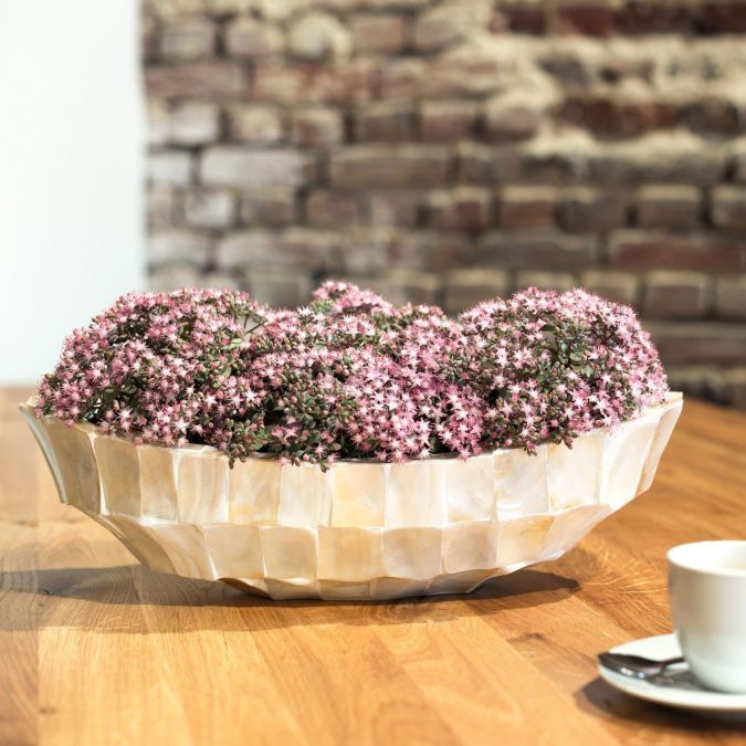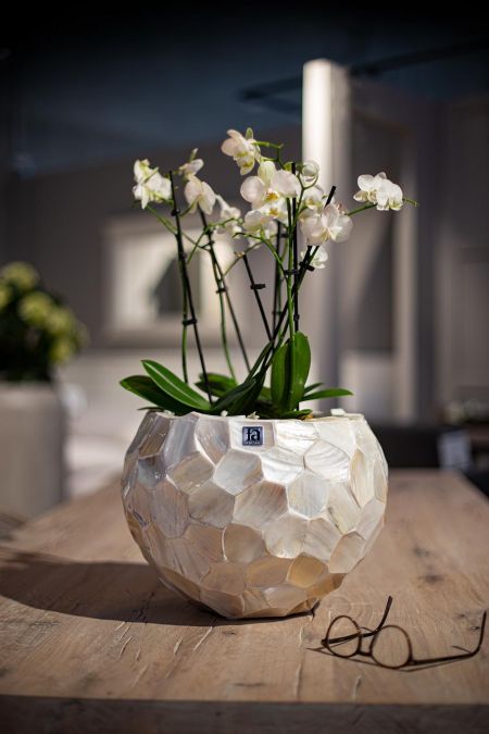 Lonci serije Školjka so skrbno ročno izdelani in prekriti z resničnimi morskimi školjkami, kar naredi ekskluziven bleščeč izgled. Z izjemno natančnimi postopkom so najperj nameščeni fragmenti lupine in nato ročno pregledane in dokončane da dosežejo pravi sijaj. Serija vklučuje lonce, sklede, namizne posode in vaze za orhideje v različnih oblikah in velikostih, tako da je mogoče celotne prostore okrasiti v enakem stulu.