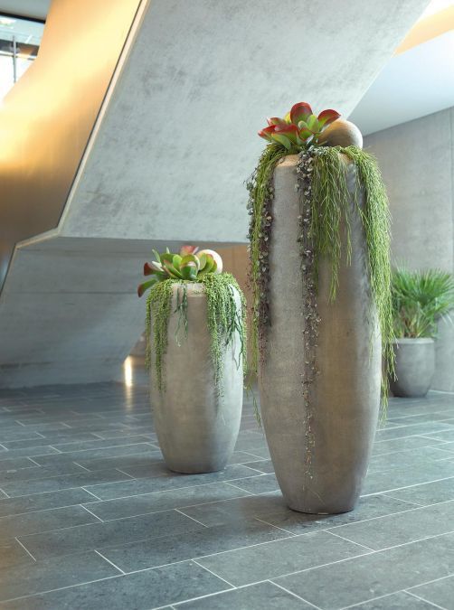Da cvetlični lonci za rastline s cementnim izgledom niso dolgočasne, dokazuje kolekcija CIGAR. Njihova toplo siva površina, ki je zanimivo gladka in hkrati porozna, ustvarja odlično podlago za zasaditev z okrasnimi rastlinami in se igrivo prilega številnim okoljem. Narejene so iz lahkega polistona in so pripravljene tako za notranjo kot zunanjo postavitev, na voljo pa so v treh velikostih.