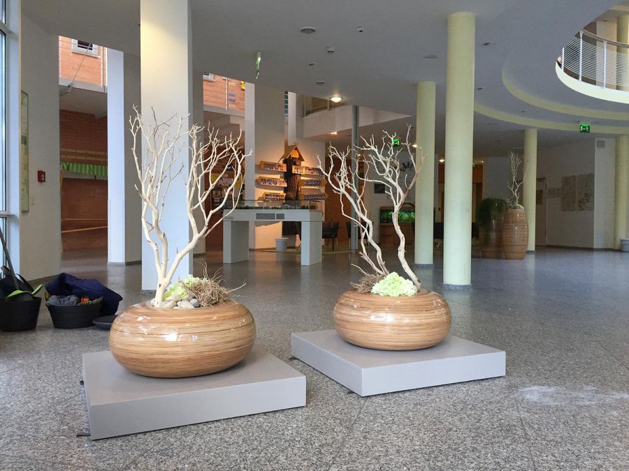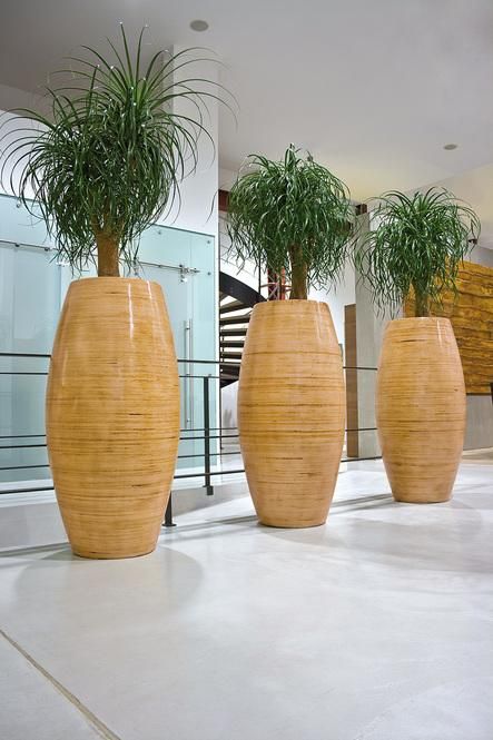 Ta material daje loncem naraven videz in pritegne pozornost povsod, kjer je treba ustvariti eksotično vzdušje. Prepričljiva je tudi visokokakovostna izdelava: robovi posod so obloženi z ustreznim materialom neposredno v posodo in tako zagotavljajo elegantno zasaditev. Ker je osnova izdelana iz trdnih in lahkih steklenih vlaken, je tudi velike lonce enostavno premikati.