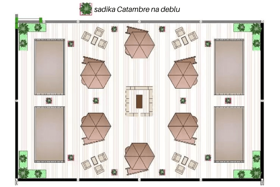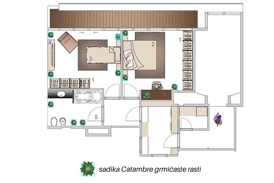 Ena od ključnih lastnosti Catambre je njeno repelentno delovanje, ki sega na površino, enako dvojnemu premeru listne mase krošnje. Zaradi te lastnosti ni priporočljivo pogosto obrezovanje, saj več listja pomeni večjo zaščito pred komarji.